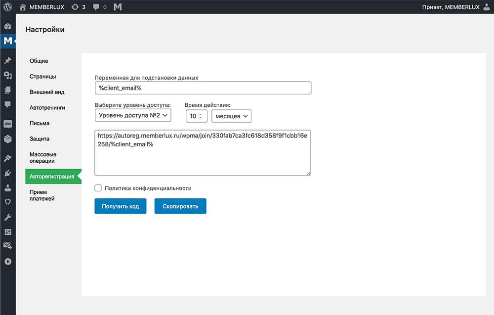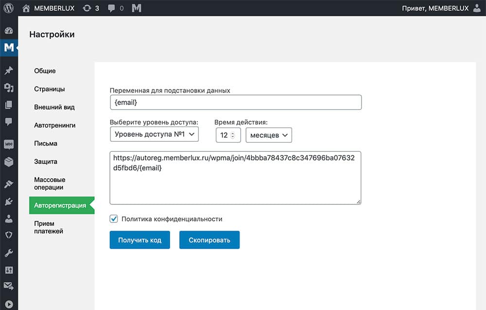 Один ключ MEMBERLUX привязывается к одному домену. Перенести плагин на другой домен возможно в течение 30 дней после покупки. Подробнее смотрите пункт №22 данного документа.